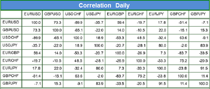 علاقة الأزواج ببعضها Correlation : تتأثر الازواج ببعضها سلبيا وايجابيا حيث هناك بعض الازواج تتحرك مع بعضها في اتجاه واحد بينما عملات اخري تتحرك عكس بعضها يمكن للمضارب الاستفاده من ذلك لمعرفة حركة العمله التي يتاجرها.